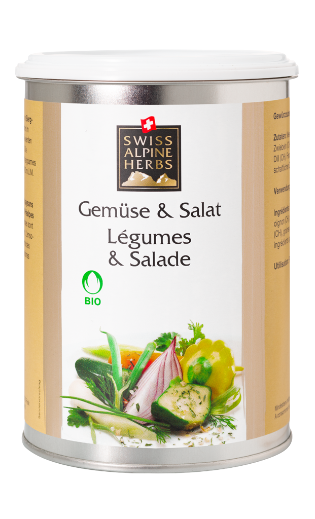 Ce mélange de gros sel marin avec un accord harmonieux d’herbes des Alpes (persil, ciboulette, estragon, aneth, fenouil et cayenne) et de légumes (carottes, poireau, ail et oignons) relève admirablement pommes de terre en robe des champs et légumes au four.