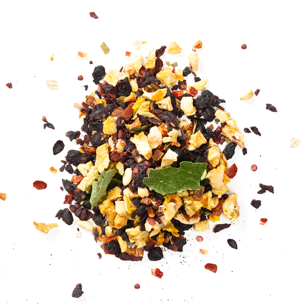 Avec sa couleur pourpre éclatante, ce thé attire immédiatement l'attention et suscite l'anticipation de la première gorgée. Son incomparable parfum de fruits se déploie dès que l'on verse de l'eau chaude et remplit la pièce d'une délicieuse note fruitée.